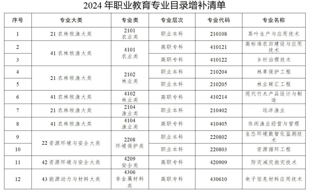 本次职业教育专业增补工作: