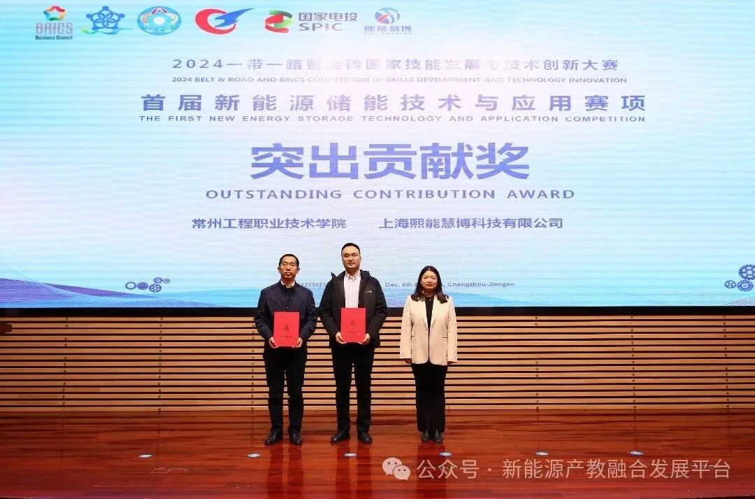2024年12月6日至8日,由金砖国家工商理事会中方理事会、一带一路暨金砖国家技能发展国际联盟、中国科协“一带一路”暨金砖国家技能发展与技术创新培训中心主办,中国发明协会、教育部中外人文交流中心联合主办,金砖国家工商理事会技能发展、应用技术与创新中方工作组承办,常州工程职业技术学院、上海熙能慧博科技有限公司、厦门市金砖未来技能发展与技术创新研究院联合承办、国家电投集团中央研究院、国家能源用户侧储能创新研发中心、未来电化学储能系统集成技术创新中心、上海翎宇机电科技有限公司、逸莱轲软件贸易(上海)有限公司协办的2024年一带一路暨金砖国家技能发展与技术创新大赛-第一届“新能源储能技术与应用”赛项在常州工程职业技术学院成功举办。此次赛事吸引了来自全国54个参赛队伍参与角逐。